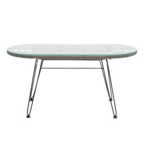 140-000004 Τραπέζι Naoki pakoworld μέταλλο μαύρο-pe γκρι-γυαλί 160x90x78εκ