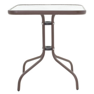 130-000028 Τραπέζι κήπου Watson pakoworld μέταλλο καφέ-γυαλί 80x80x70εκ