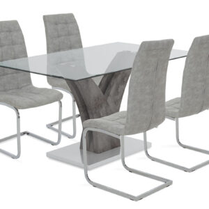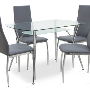 200-000139 Τραπεζαρία Jacob-Jella pakoworld σετ 5τμχ διάφανο γυαλί-κάθισμα γκρι pu 120x75x75,5εκ