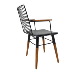 140-000015 Πολυθρόνα Naoki pakoworld μαύρο μέταλλο-pe φυσικό