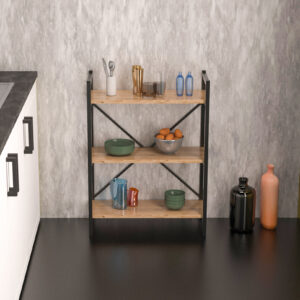 071-000898 Βιβλιοθήκη-στήλη PWF-0321 pakoworld πεύκο – μαύρος μεταλλικός σκελετός 50x30x180εκ