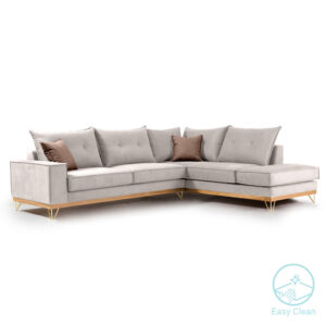 168-000008 Γωνιακός καναπές δεξιά γωνία Luxury II pakoworld ύφασμα ciel-cream 290x235x95εκ