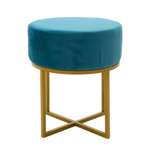 110-000004 Σκαμπό σαλονιού Isla pakoworld βελούδο τυρκουάζ-χρυσό 40x40x45εκ