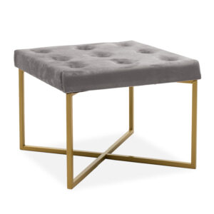 110-000001 Σκαμπό σαλονιού Isla pakoworld βελούδο γκρι-χρυσό 40x40x45εκ