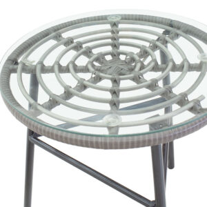140-000039 Τραπέζι Gaus pakoworld μέταλλο μαύρο-pe γκρι-γυαλί Φ45×46εκ