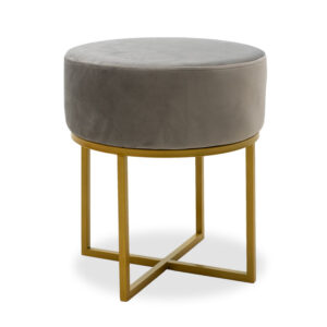 110-000001 Σκαμπό σαλονιού Isla pakoworld βελούδο γκρι-χρυσό 40x40x45εκ
