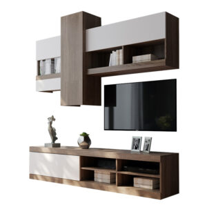 192-000025 Σύνθετο σαλονιού Sandro pakoworld καρυδί-λευκό 175x37x160εκ