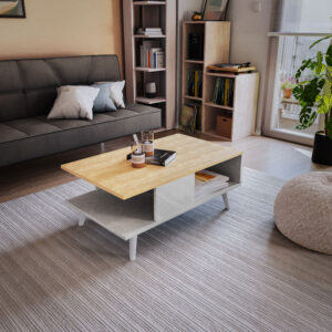 058-000049 Τραπέζι σαλονιού HAMILTON pakoworld χρώμα γκρι cement-φυσικό 89x48x33εκ