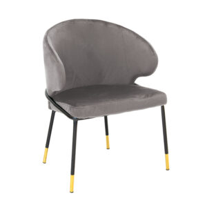 112-000026 Καρέκλα Brianna pakoworld βελούδο γκρι-μαύρο χρυσό πόδι