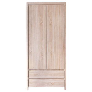 249-000008 Ντουλάπα ρούχων δίφυλλη Zelia pakoworld με 2 συρτάρια χρώμα φυσικό 79x42x180εκ