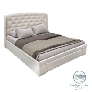 049-000056 Κρεβάτι Kiev pakoworld ύφασμα εκρού αποθηκευτικός χώρος 160×200εκ
