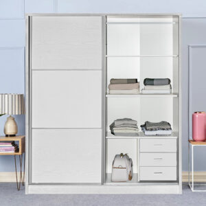 249-000022 Ντουλάπα ρούχων Griffin pakoworld δίφυλλη με συρόμενες πόρτες χρώμα λευκό 121×56.5×180.5εκ
