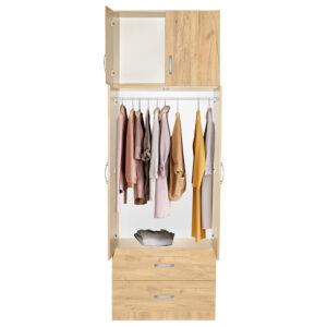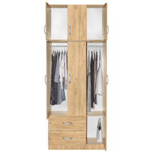 249-000029 Ντουλάπα ρούχων τρίφυλλη Zelia pakoworld με 2 συρτάρια χρώμα φυσικό mo 90x42x180εκ