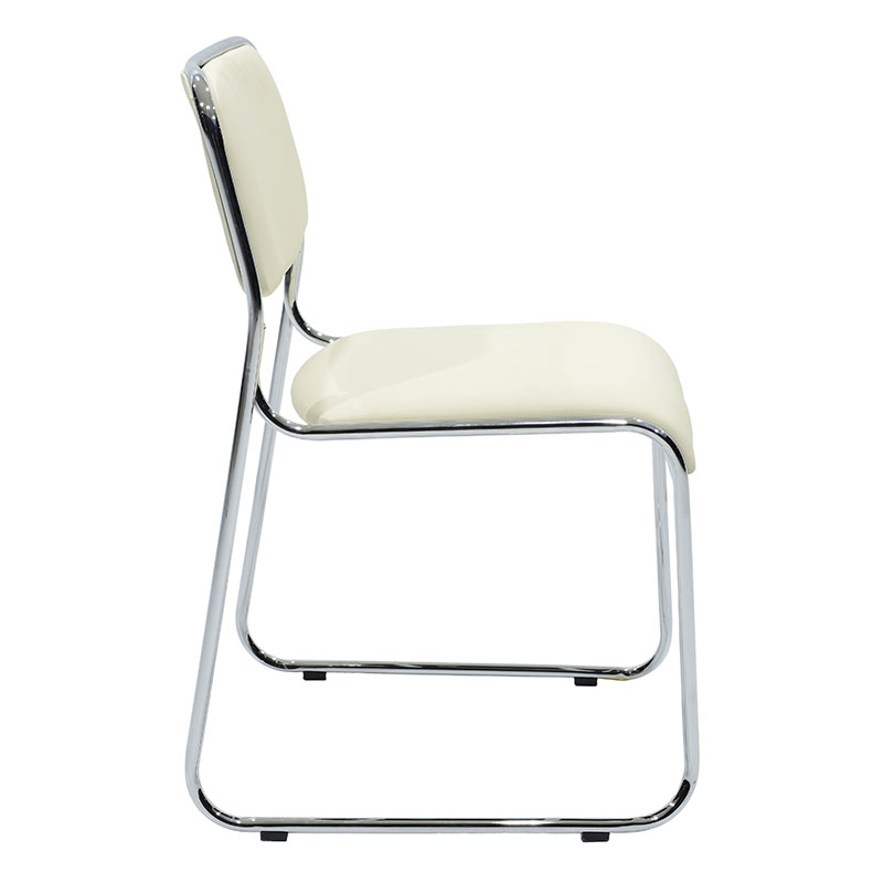 Κάθισμα αναμονής σε minimal μοντέρνα γραμμή από ανθεκτικό μεταλλικό επιχρωμιωμένο σκελετό, επενδυμένο με λευκό τεχνόδερμα υψηλής ποιότητας. Ιδανικό για συνεδριακούς χώρους, αλλά και ως κάθισμα υποδοχής επισκεπτών στο γραφείο.