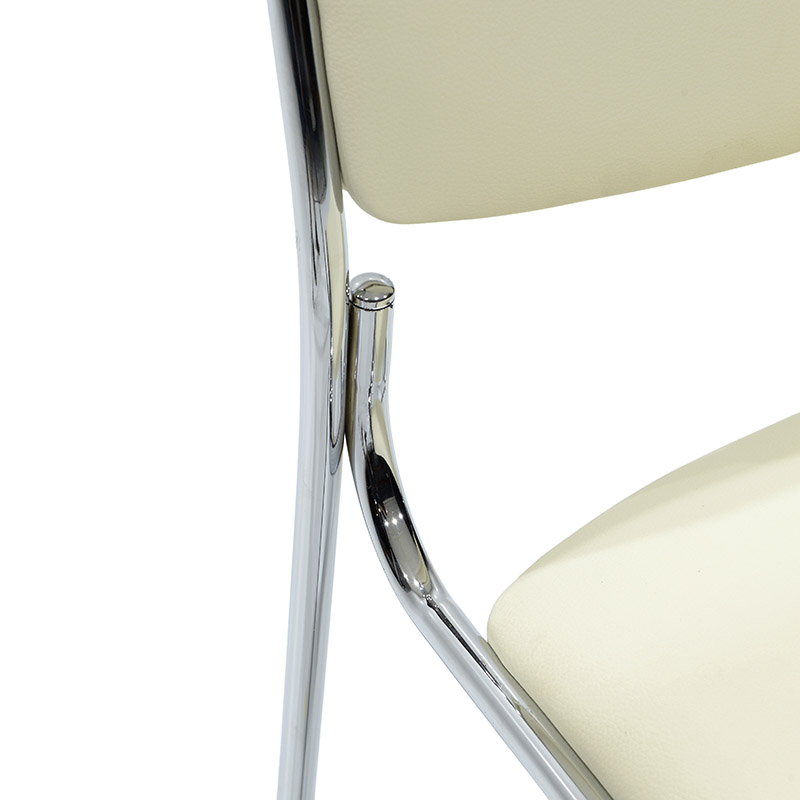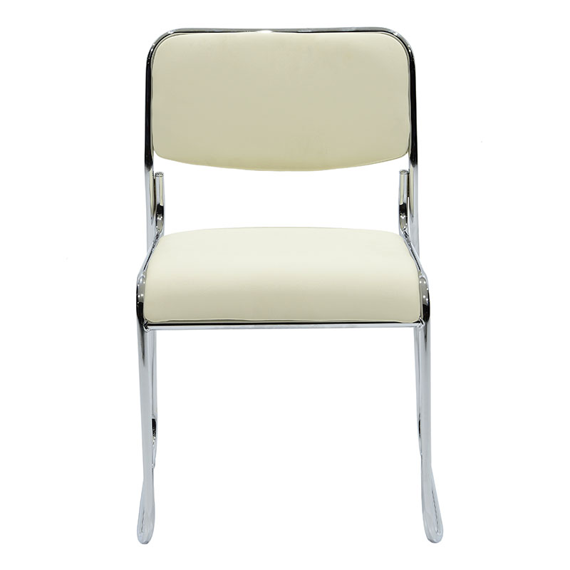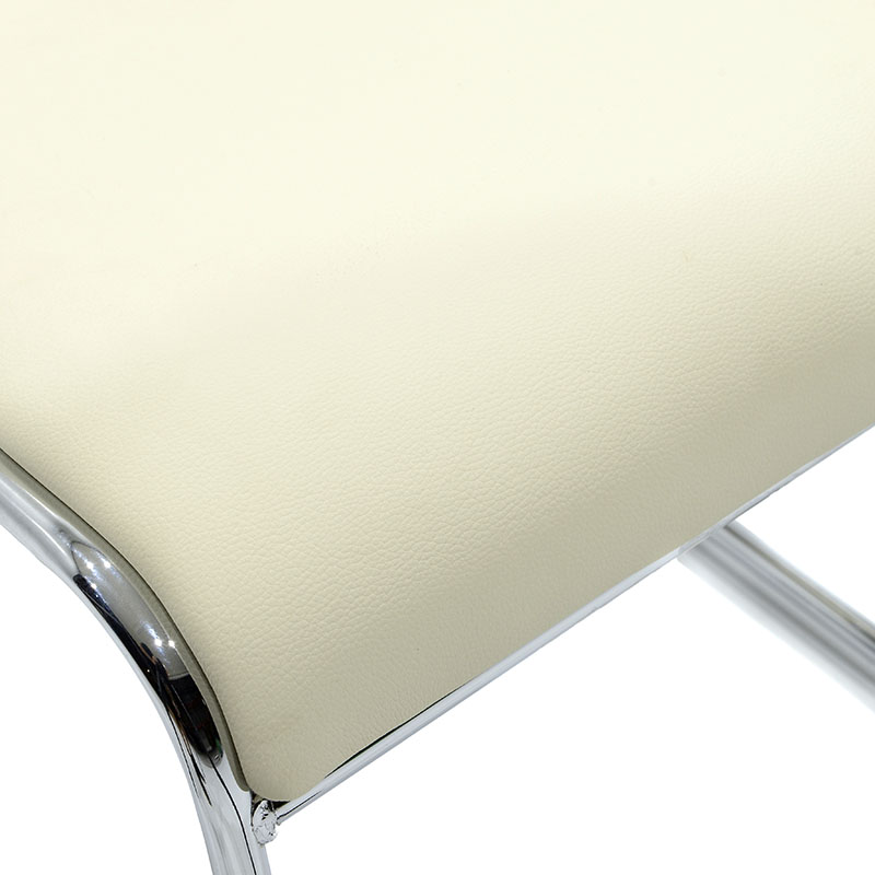 Κάθισμα αναμονής σε minimal μοντέρνα γραμμή από ανθεκτικό μεταλλικό επιχρωμιωμένο σκελετό, επενδυμένο με λευκό τεχνόδερμα υψηλής ποιότητας. Ιδανικό για συνεδριακούς χώρους, αλλά και ως κάθισμα υποδοχής επισκεπτών στο γραφείο.
