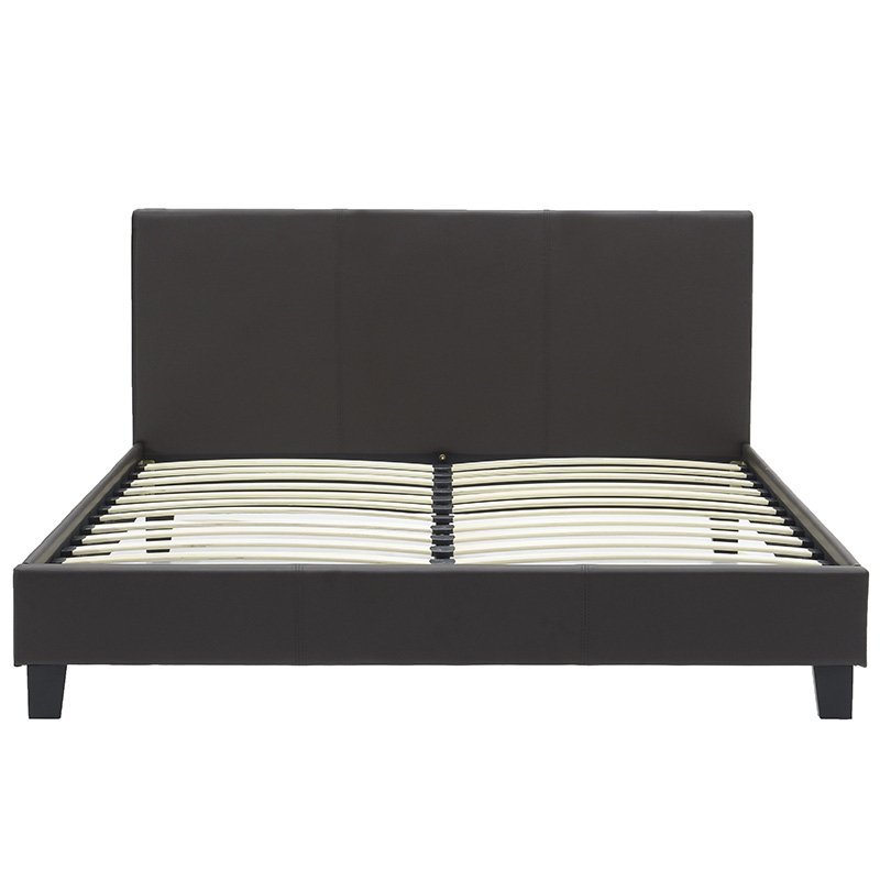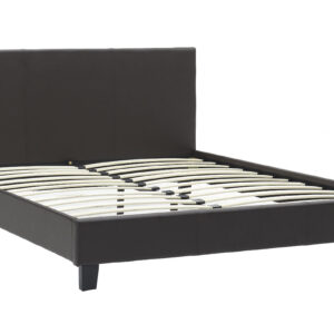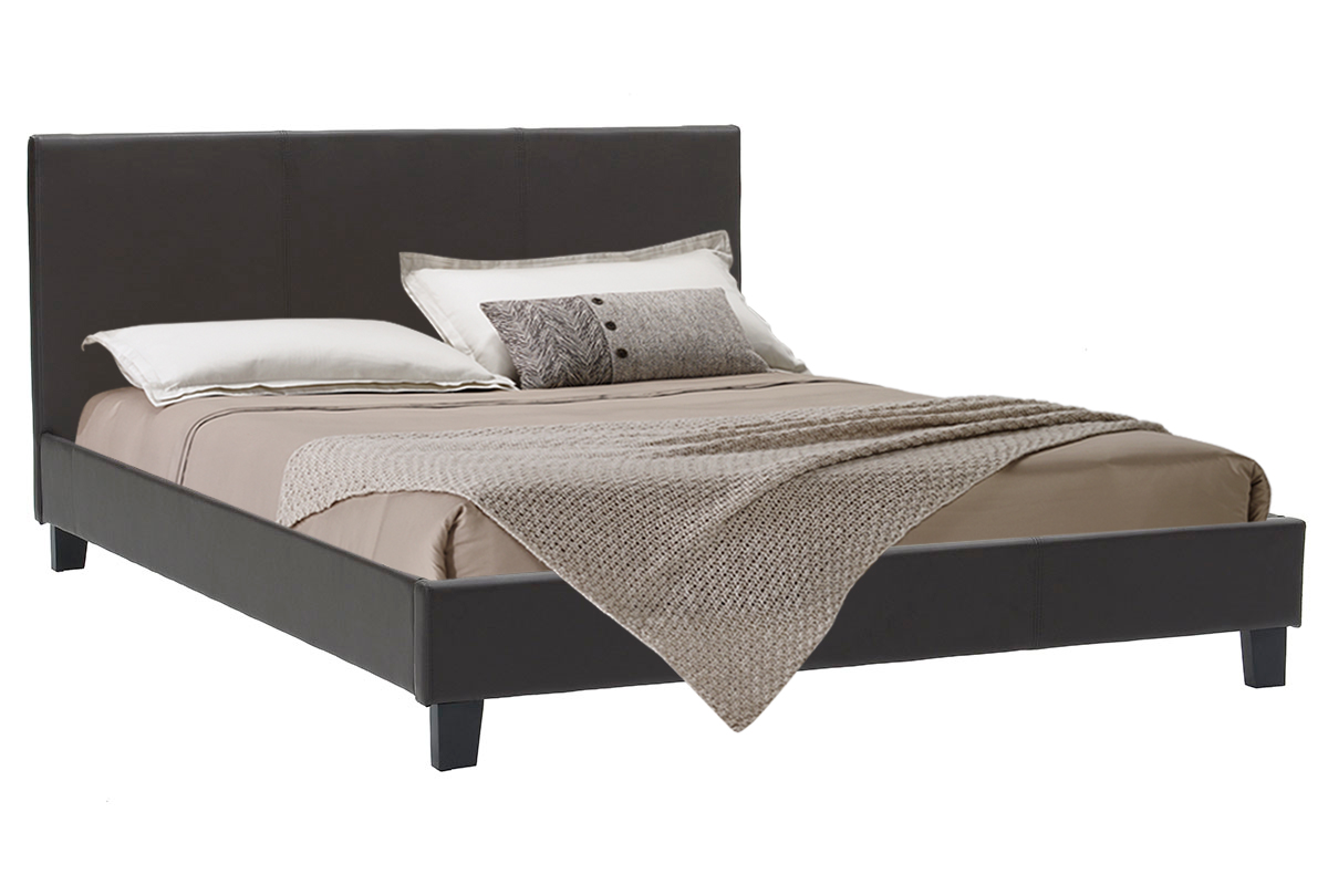 Διπλό κρεβάτι Nevil, επένδυση με σκούρο καφέ ματ τεχνόδερμα