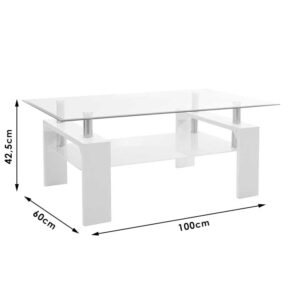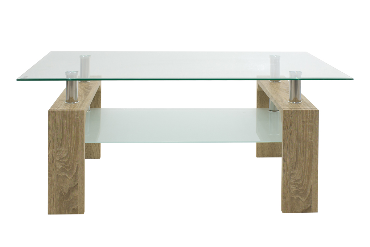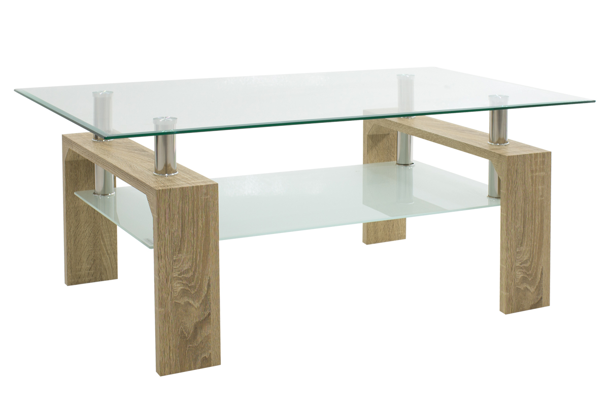 Τραπεζάκι σαλονιού Maiha ορθογώνιο με επιφάνεια γυάλινη χρώματος sonoma 100x60x42,5 εκ