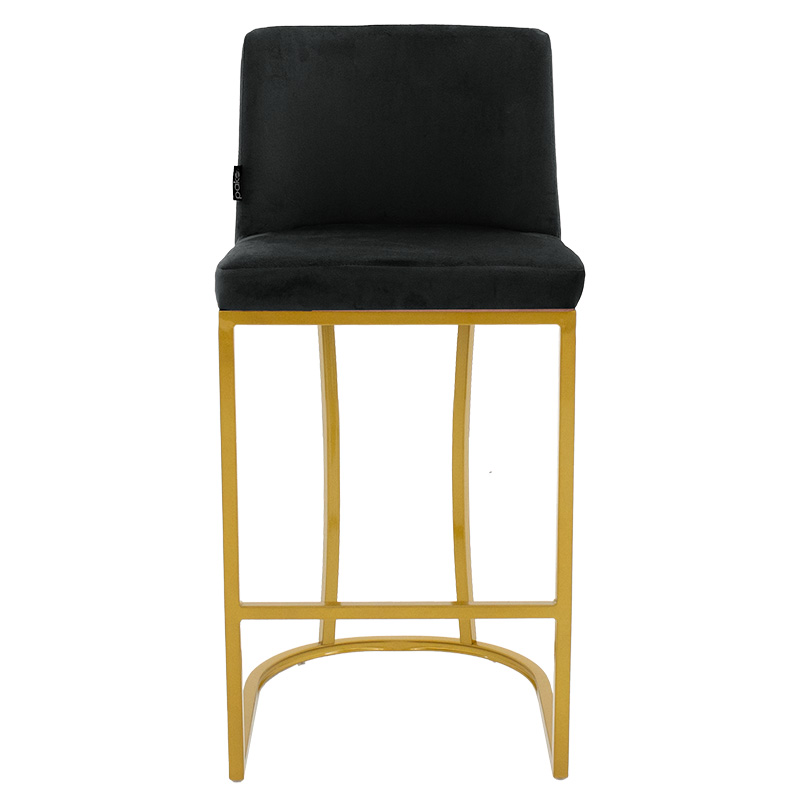 Σκαμπό bar μεσαίου ύψους Impartial I pakoworld μεταλλικό χρυσό-βελούδο μαύρο