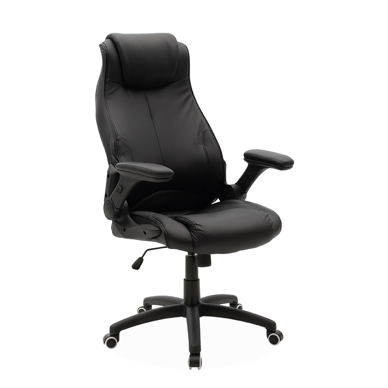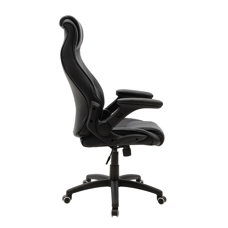 * Καμπύλο μπράτσο που ακολουθεί την κλίση των χεριών, ενισχυμένο με τεχνόδερμα για μεγαλύτερη άνεση. Το μπράτσο μπορεί να ανακλιθεί όρθιο, ώστε να πλησιάζει περισσότερο το γραφείο όταν δε χρησιμοποιείται.