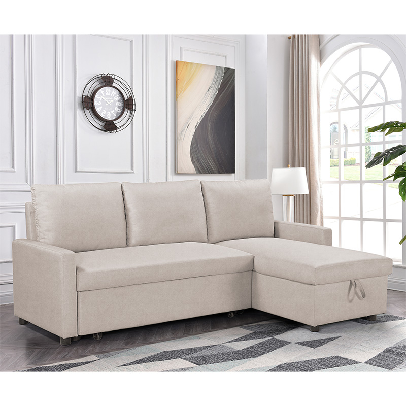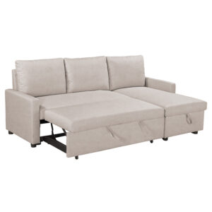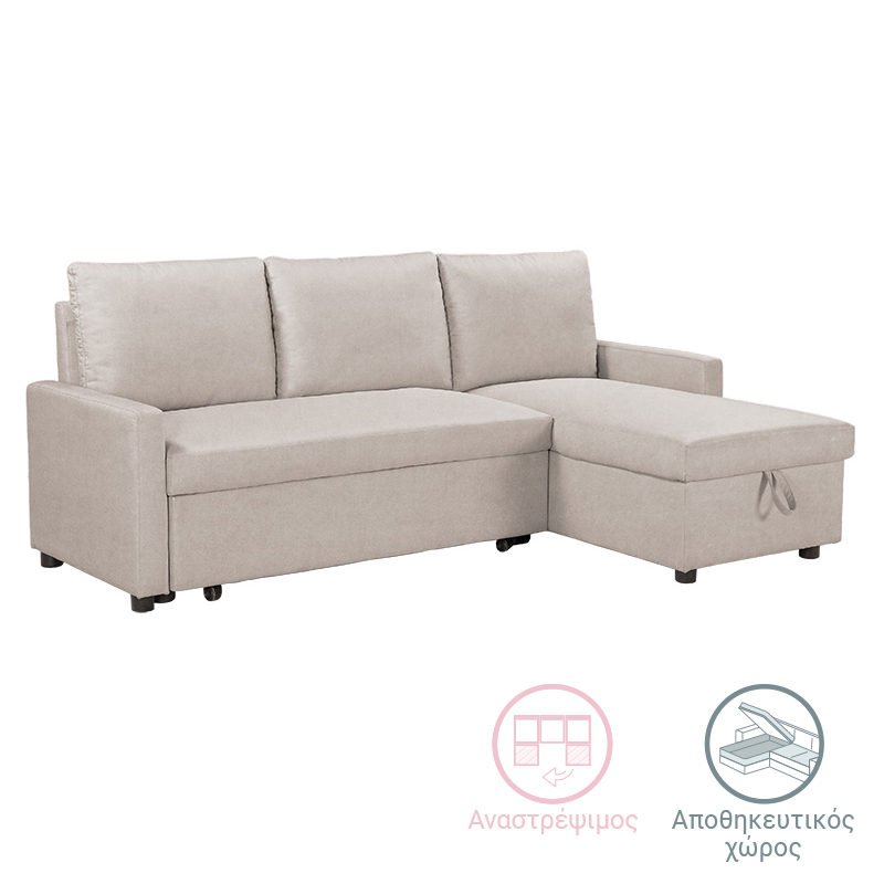 Γωνιακός καναπές αναστρέψιμος κρεβάτι Infuse pakoworld με αποθηκευτικό χώρο μπεζ ύφασμα 203x130x88εκ