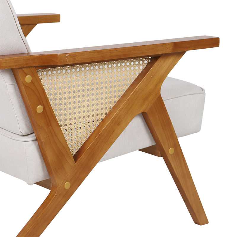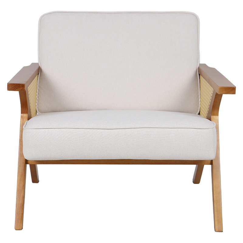 Πολυθρόνα Claudia pakoworld ύφασμα μπεζ-pe rattan-rubberwood φυσικό