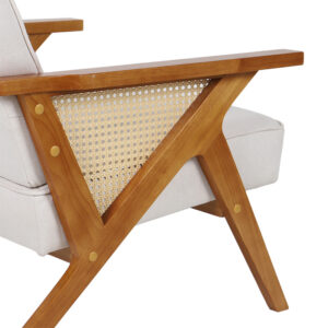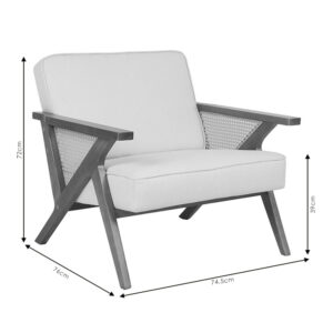 * Φέρει PE rattan πλέγμα μεταξύ των μπράτσων. Το PE rattan είναι ένα είδος οικολογικού συνθετικού rattan, ανακυκλώσιμο και με μεγαλύτερη ανθεκτικότητα σε σχέση με τα άλλα είδη.