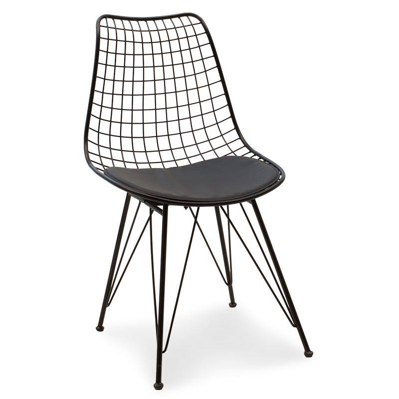 Καρέκλα Taj pakoworld μεταλλική μαύρο με μαξιλάρι PVC μαύρο