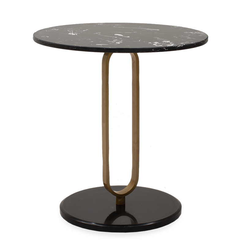 Βοηθητικό τραπέζι Trevor pakoworld μάρμαρο μαύρο-χρυσό Φ50×54,5εκ