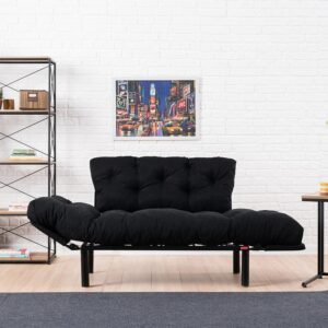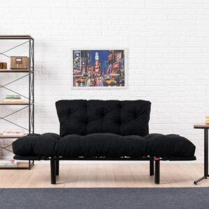 Καναπές κρεβάτι PWF-0018 2θέσιος με ύφασμα χρώμα μαύρο 155x73x85cm