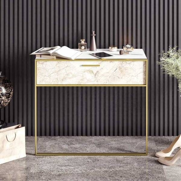 Κονσόλα Marble pakoworld χρώμα λευκό μαρμάρου-χρυσό 90×38,5×77εκ