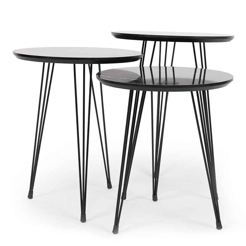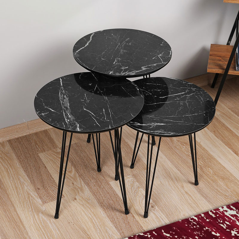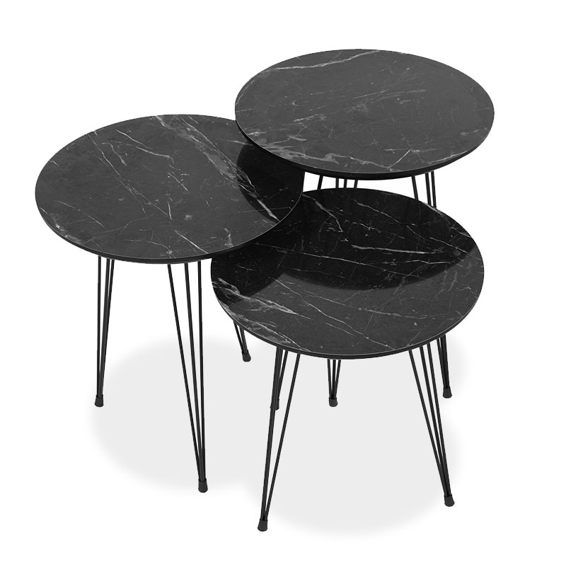 Τραπεζάκια σαλονιού PWF-0306 pakoworld σετ 3 τεμ χρώμα μαύρο μαρμάρου 38x38x55εκ