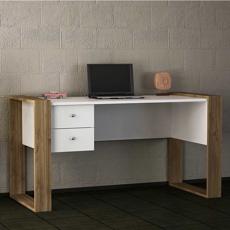 Γραφείο εργασίας PWF-0311 pakoworld καρυδί-λευκό 158,5x60x72,5εκ