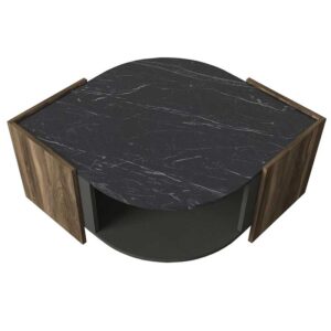 Τραπεζάκι σαλονιού PWF-0315 pakoworld χρώμα μαύρο μαρμάρου-καρυδί-ανθρακί 75x75x40εκ
