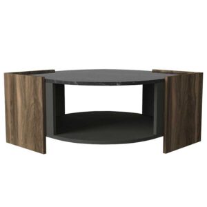 Τραπεζάκι σαλονιού PWF-0315 pakoworld χρώμα μαύρο μαρμάρου-καρυδί-ανθρακί 75x75x40εκ