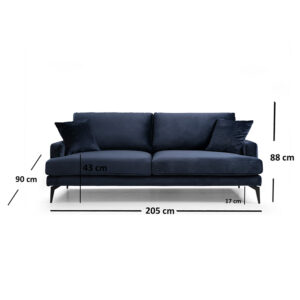 Καναπές 3θέσιος Fortune pakoworld βελούδο μπλε-μαύρο 205x88x90εκ