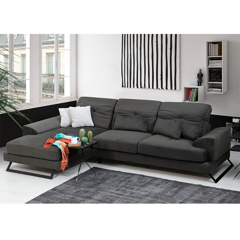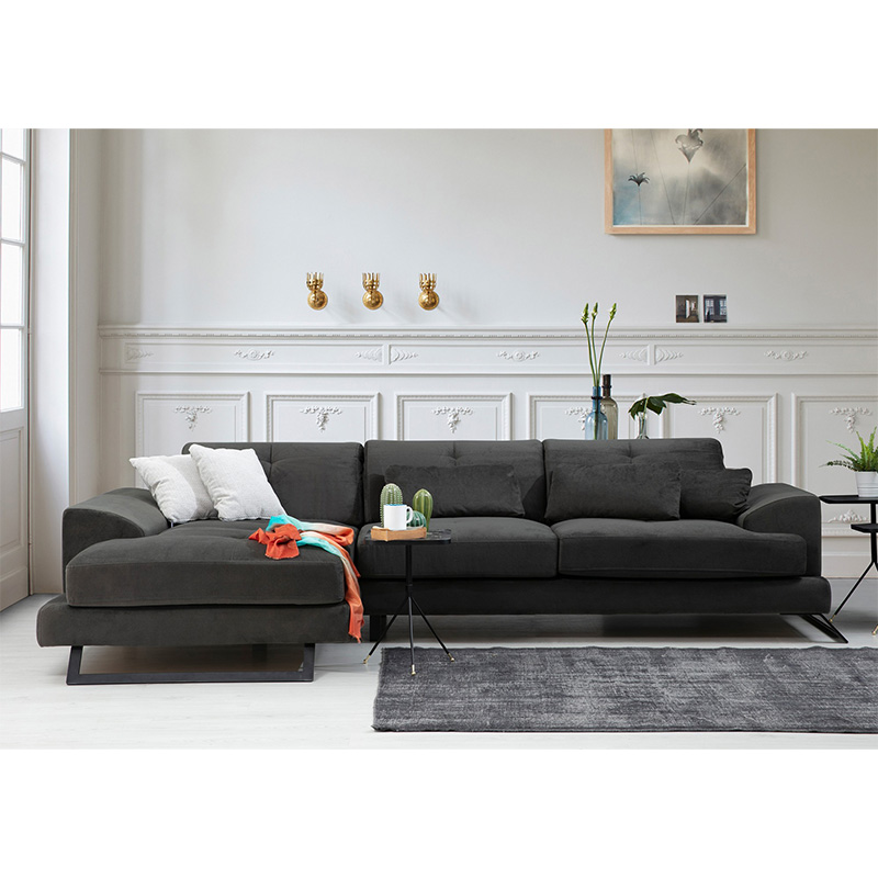 Γωνιακός καναπές PWF-0503 pakoworld δεξιά γωνία βελούδο ανθρακί-μαύρο 308x190x100/92εκ