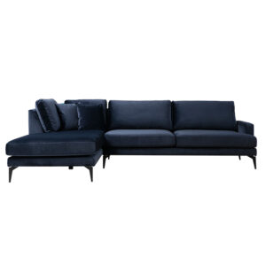 Γωνιακός καναπές Fortune pakoworld δεξιά γωνία βελούδο μπλέ-μαύρο 283x180x88εκ