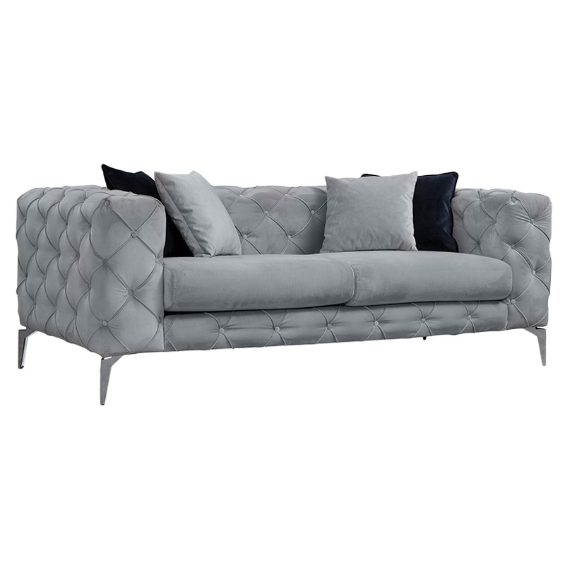Καναπές 2θέσιος PWF-0502 pakoworld βελούδο γκρι-χρώμιο 197x90x73εκ