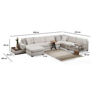 Γωνιακός καναπές PWF-0507 pakoworld αριστερή γωνία ύφασμα μπεζ-καρυδί 428x272x85εκ