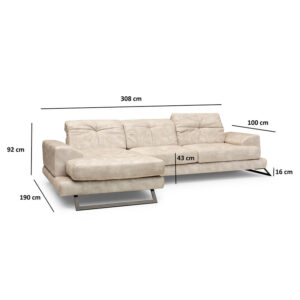 Γωνιακός καναπές PWF-0503 pakoworld δεξιά γωνία ύφασμα μπέζ-μαύρο 308x190x100cm