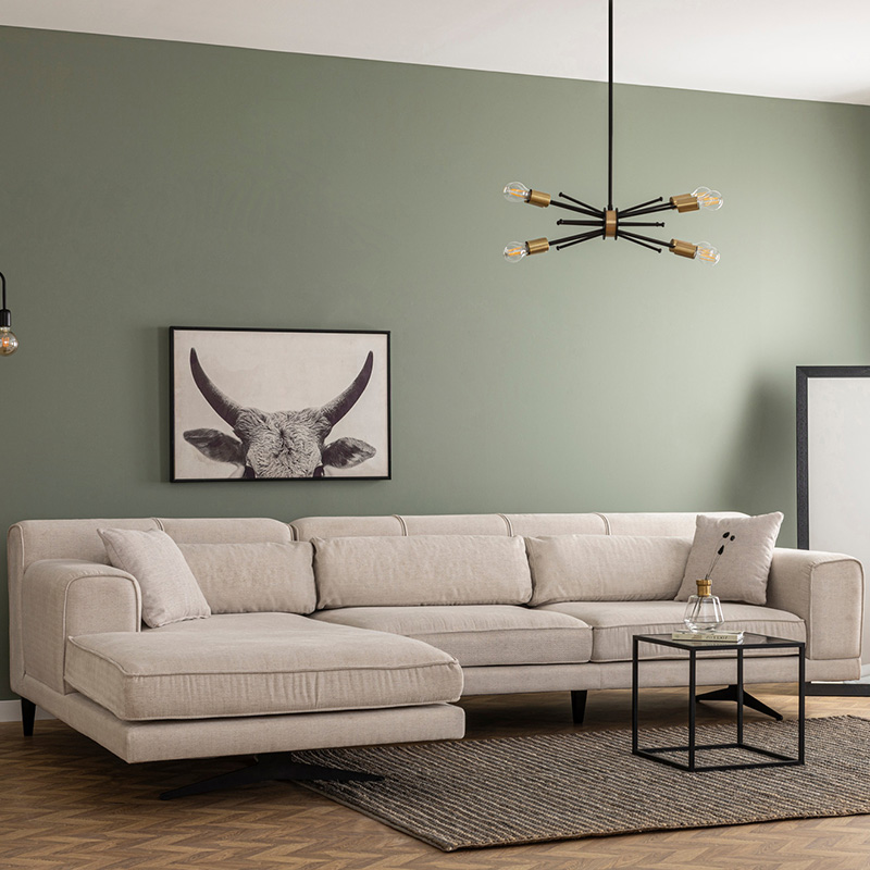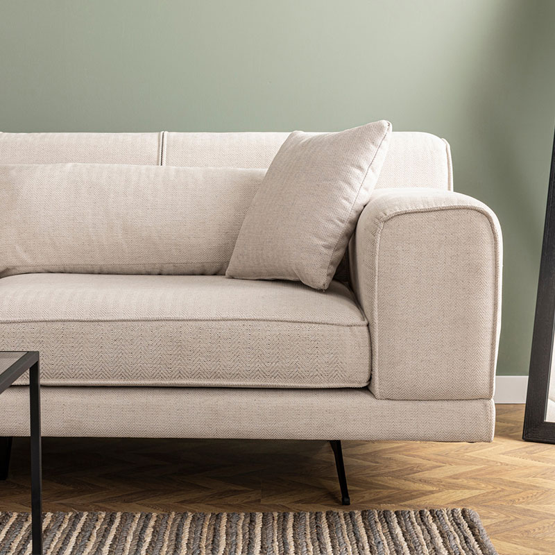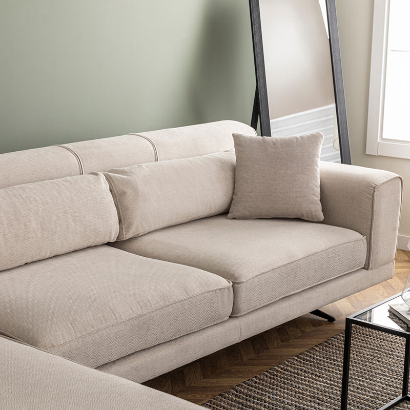 Γωνιακός Καναπές PWF-0533 pakoworld δεξιά γωνία ύφασμα μπεζ-μαύρο 308x198x78εκ