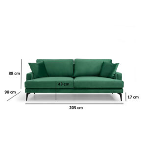 Καναπές 3θέσιος Fortune pakoworld βελούδο πράσινο-μαύρο 205x90x88εκ