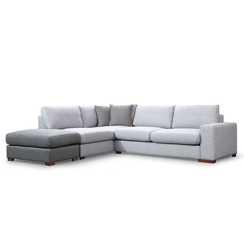 Γωνιακός καναπές PWF-0542 pakoworld δεξιά γωνία ύφασμα γκρι-καρυδί 246x266x85εκ