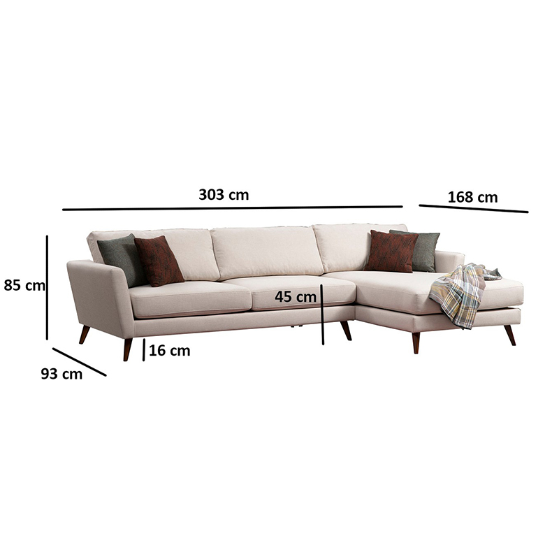 Γωνιακό καναπές κρεβάτι PWF-0526 pakoworld δεξιά γωνία ύφασμα μπεζ-καρυδί 303x168x85εκ