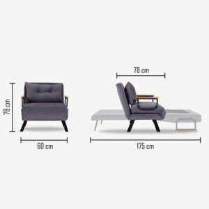 Πολυθρόνα-κρεβάτι Ethereal pakoworld ύφασμα ανθρακί-μαύρο 60x78x78εκ