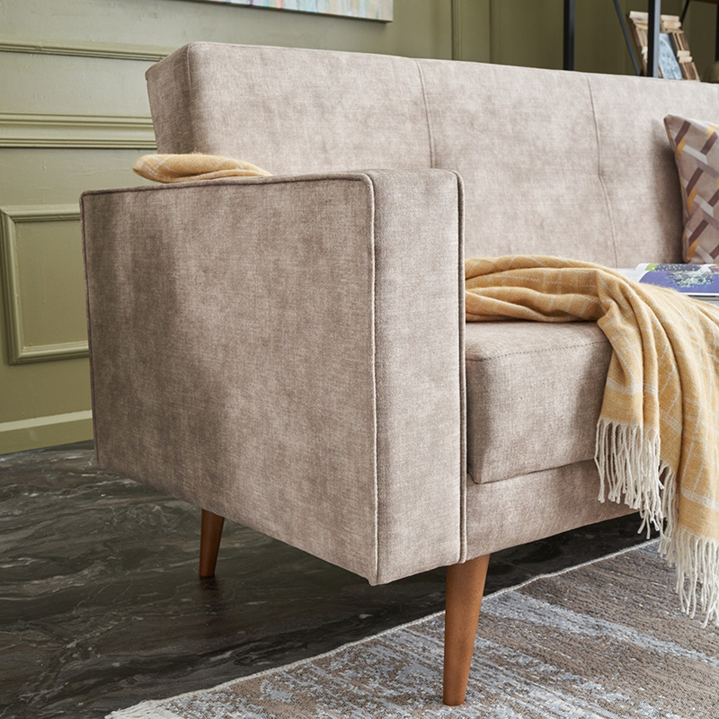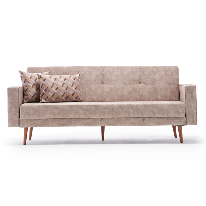 Καναπές κρεβάτι 3θέσιος PWF-0528 pakoworld ύφασμα μπεζ antique – καρυδί 214x75x90εκ