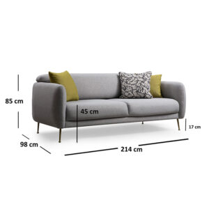 Καναπές 3θέσιος PWF-0513 pakoworld ύφασμα γκρι-μαύρο 214x98x85εκ