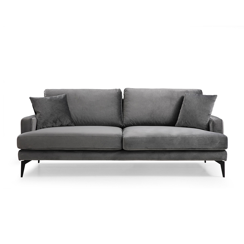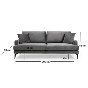 Καναπές 3θέσιος Fortune pakoworld βελούδο ανθρακί-μαύρο 205x90x88εκ