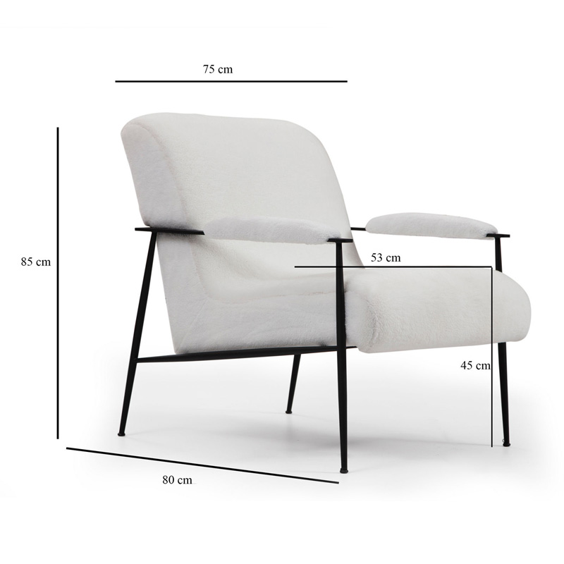 Πολυθρόνα PWF-0578 pakoworld ύφασμα λευκό 75x80x85εκ
