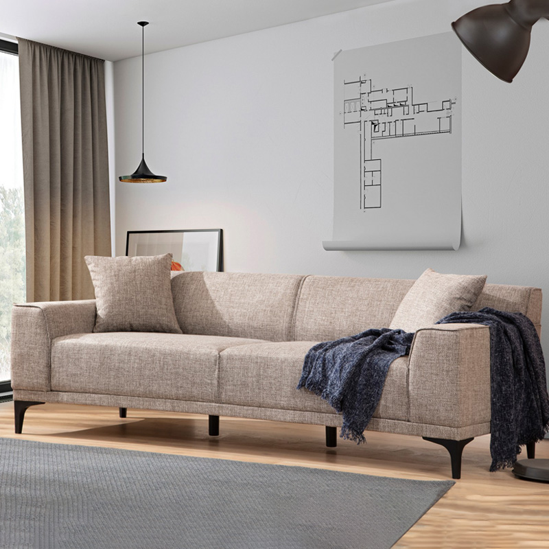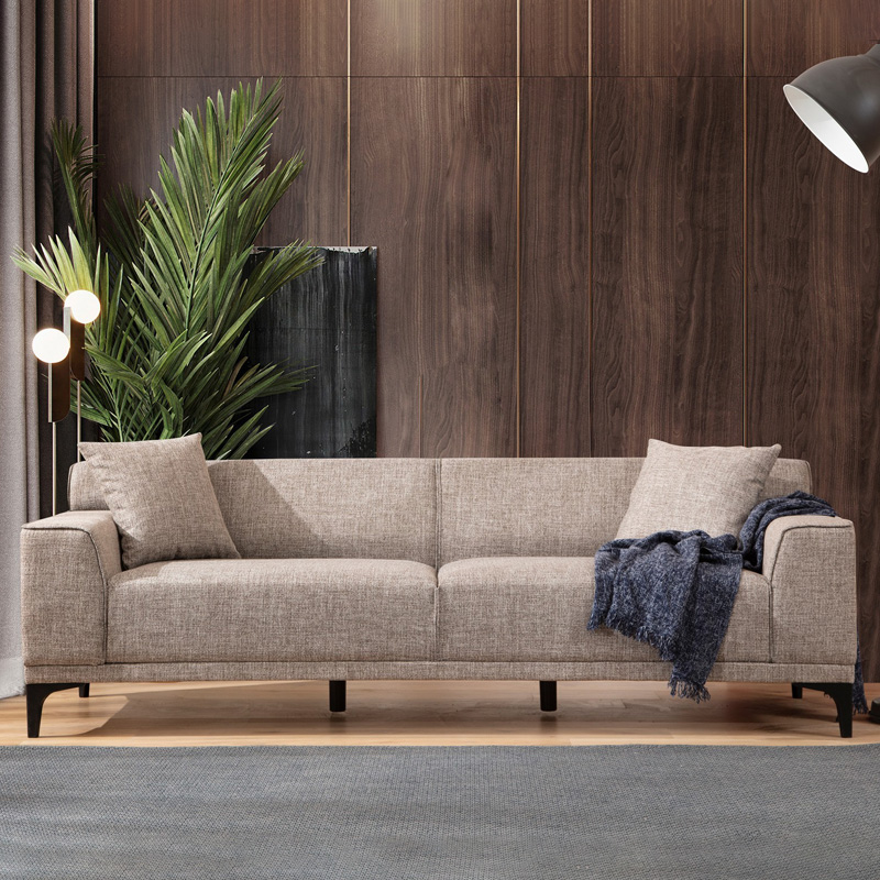 Καναπές 3θέσιος PWF-0566 pakoworld ύφασμα μπεζ-καφέ 212x69x86εκ